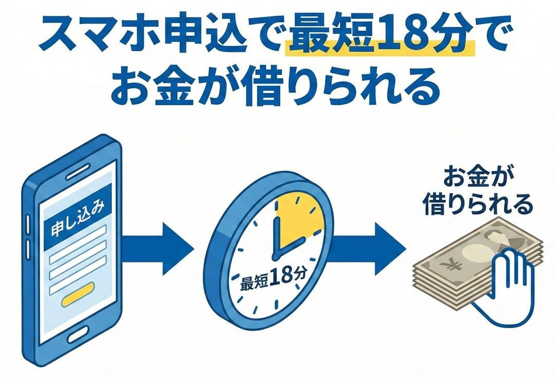 カードローンはスマホで申込が簡単にでき、最短たった18分でお金を借りられます