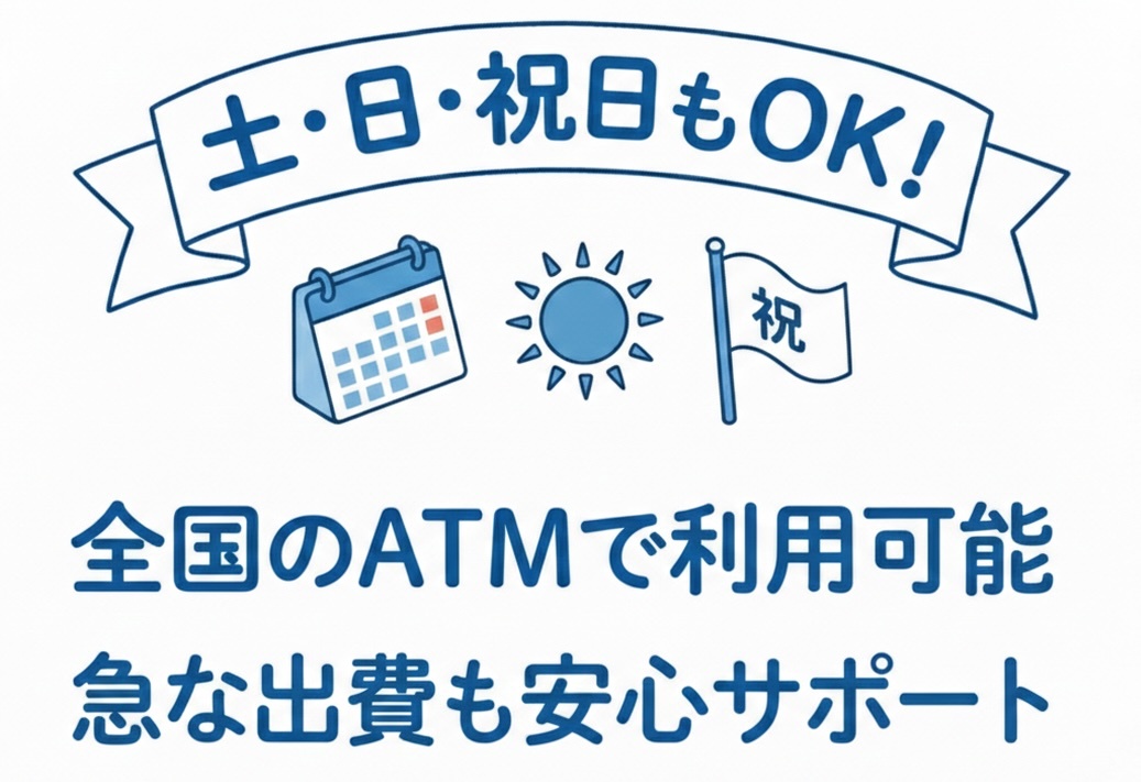 平日は忙しくてどうしても時間がない、土日祝日に急にお金が必要になった時も安心です。