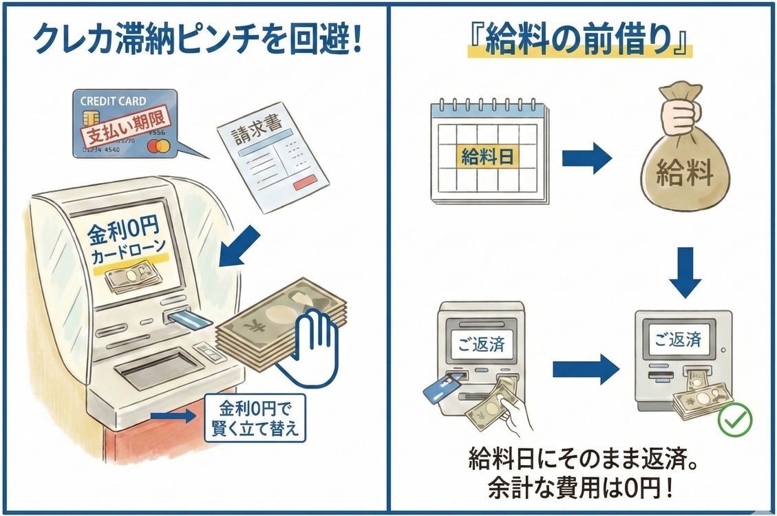 金利0円だと給料を前借りするのと同じなので、一時的な金欠にはカードローンでの立て替えがおすすめです。